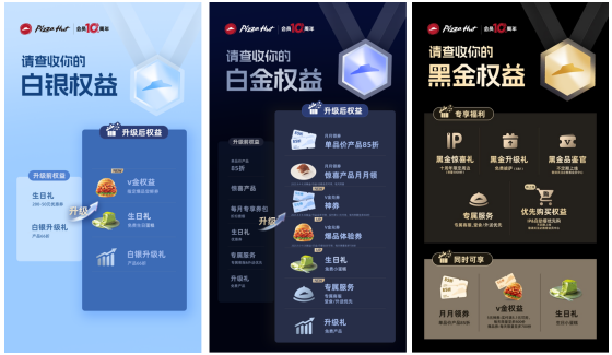 必胜客会员体系迭代史,也是中国餐饮业数字化发展的缩影。2017年V享会开启必胜客线上积分时代;2020年尊享卡上线,付费会员专享福利,初显专属感;2023年分级体系迭代,白金生日礼等权益深化精准服务。