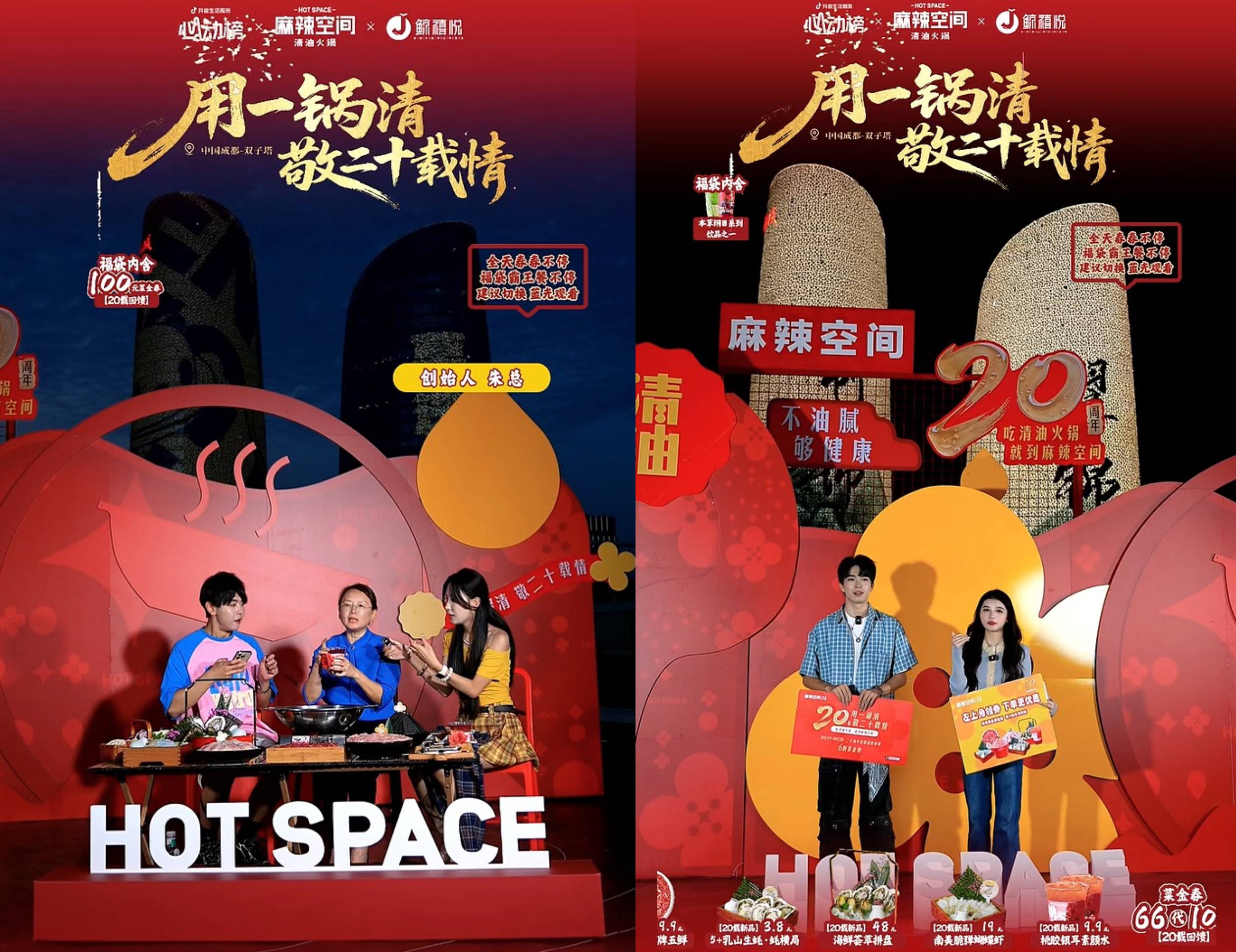 为了让这份“灵魂”被更多人读懂,麻辣空间在国庆期间以“用一锅清油,敬20载情”为主题,在成都双子塔前策划了一场直播。