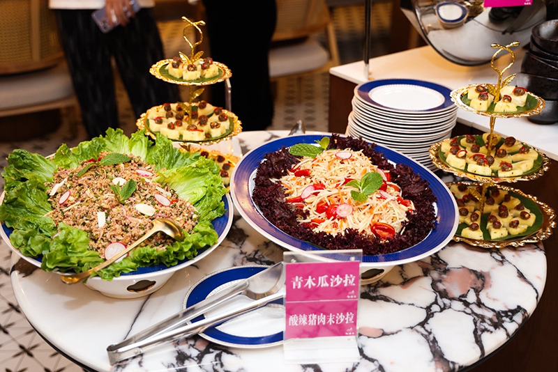 正宗泰式飨宴:帕塔拉泰餐厅以“还原泰国本土风味”为宗旨,呈现多道遵循传统工艺烹制的经典菜品。从手工熬制的咖喱酱料,到现捣香茅为底的冬阴功汤,每一道菜肴皆在味觉与视觉之间取得精妙平衡,令嘉宾品味的不只是美食,更是泰国饮食文化的深厚底蕴。