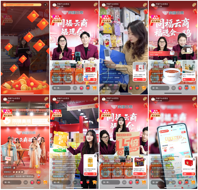 10月27日至29日圆满举行的“同福云商福选会”,通过爆品专场、大牌驾到、义乌专场等特色直播,依托同福共享平台成熟供应链,以集采低价、全品类爆品、店内看直播订货为优势,为社区超市、便利店、餐馆等实体终端店,搭建降成本、提效率、多盈利的经营新链路。而同福专业运营团队则通过会员储值、营销支持、直播引流等助小店盈利,其中直播引流借短视频公域流量,精准覆盖门店3公里客群,持续为终端小店吸引客流、提高商品动销率。