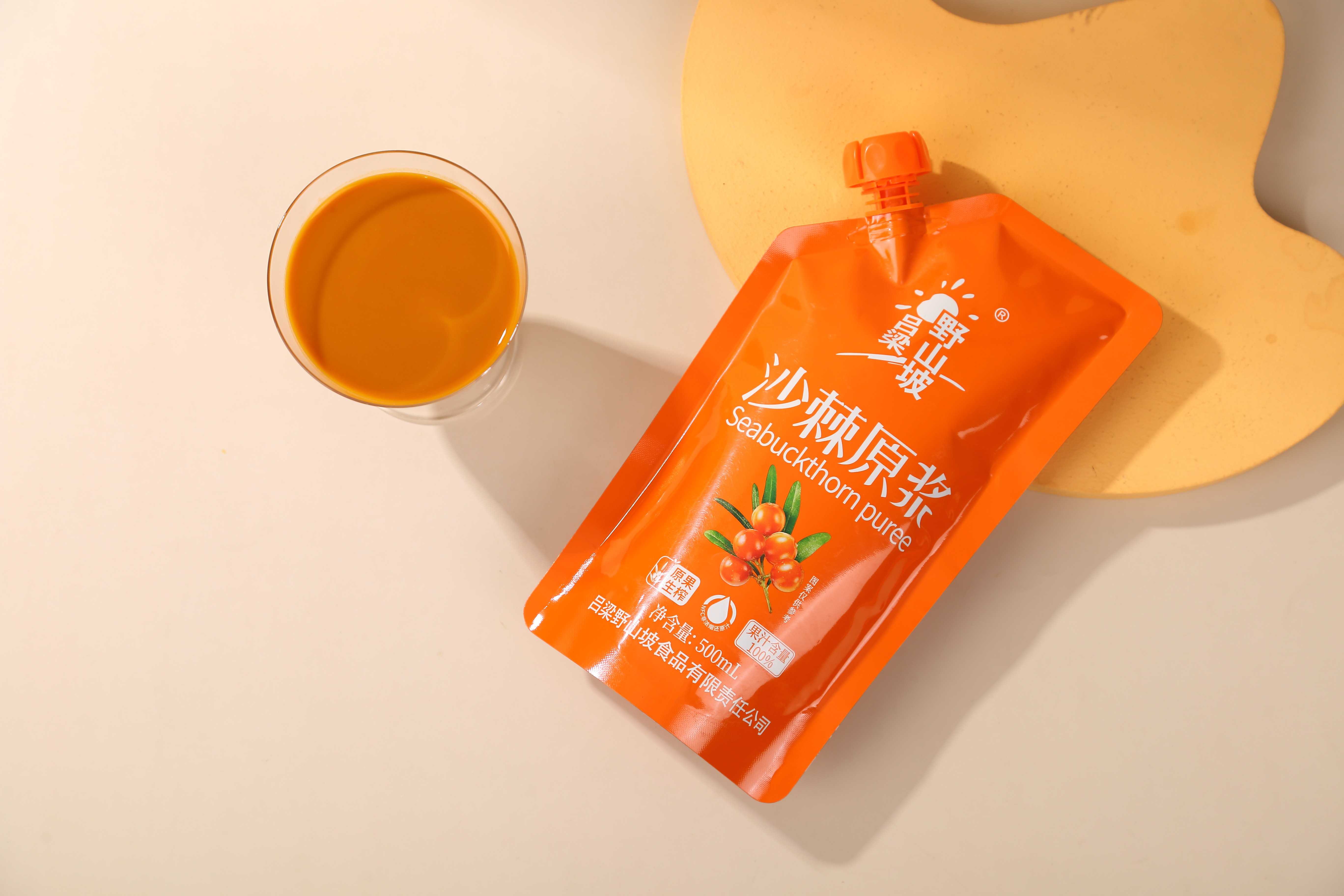 野山坡沙棘原浆提供500g袋装、20ml支装、50ml瓶装、180ml瓶装、30ml袋装等多种规格。不添加水、糖及防腐剂的配方设计,保留了天然沙棘果油成分。这种果油与维C的共存状态,在一定程度上形成天然保护层,减缓维C的氧化速度。