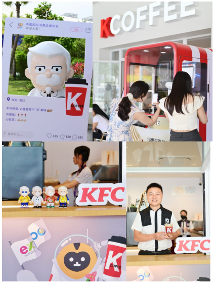 肯德基旗下现磨咖啡品牌K咖啡小馆会展中心店也首次亮相消博会。红白相间的外立面,搭配消博IP的可爱形象,让这间K咖啡小馆成为参展客商和消费者的网红补给站。而6-7号馆外围的“KFC超级甜品站”和“气模爷爷”组合也成为了消博会登陆广场上的人气“迎宾大使”,与消博吉祥物“元元”、“宵宵”一同恭迎八方宾朋。