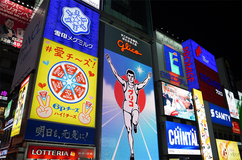 1935年——在大阪心斋桥首次树立Glico的霓虹灯广告牌,如今已成为大阪“必打卡景点”之一并更新至第六代。