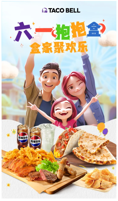 对于很多小朋友而言,无论是哪种六一儿童节欢度时光的方式,能和爸爸妈妈一起,大手牵小手一起度过就是最好的庆祝。Taco Bell塔可钟此次以家庭欢聚的亲密抱抱为灵感,特别推出“六一抱抱盒”套餐,以“盒”庆祝家庭欢聚时刻。