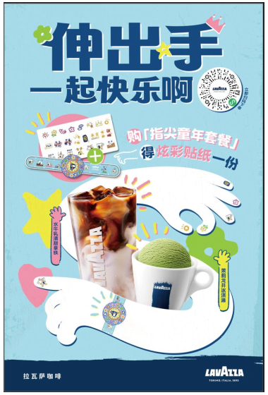 说到童年游戏,和小伙伴一同发挥创意,用炫丽的纹身贴和指甲贴纸互相装扮是很多人难忘的童年记忆。在儿童节期间,Lavazza拉瓦萨别出心裁推出了“指尖童年”套餐,任选19款咖啡搭配7款任选清甜可口的冰淇淋或更多甜点,让成年人在繁忙的日常生活中,也可以用一杯咖啡的时间重回纯真年代。