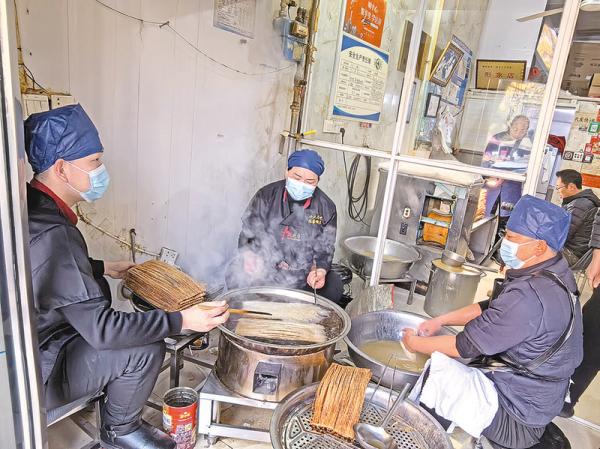 “陈家馓子传到我这儿已经是第六代了,我的儿子现在也开始经营馓子了。我家的馓子靠手艺‘出圈’,生意越做越红火。”陈二勇介绍,他和陈红勇从小耳濡目染,手艺早已学成,后来各自娶了媳妇,全家人一起经营馓子生意,日子过得和和美美、有滋有味。