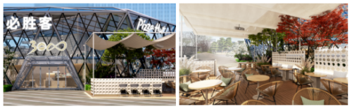 这家全新打造的度假风设计主题餐厅面朝大海,全玻璃透明的外观不仅将悠闲浪漫的氛围拉满,还全方位展现出一个绿色互动体验空间,倡导消费者与必胜客一起拥抱低碳生活,共创可持续生活方式。