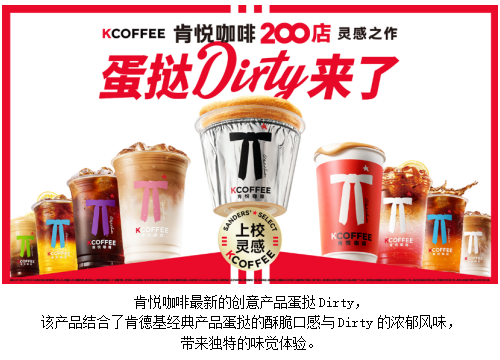 本次200家门店店庆,肯悦咖啡以肯德基的经典产品蛋挞为灵感,推出了最新的“上校灵感”系列创意产品——蛋挞Dirty。该产品以挞壳作为容器,倒入奶液和咖啡液,融合咖啡的醇香、挞皮的酥香及奶基底的黄油香,结合了蛋挞的酥脆口感与Dirty的浓郁风味,让消费者直呼“上头”。