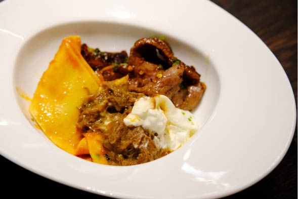 将言盐特质的手工蛋黄意大利面煮好之后,加上肉酱,配上三角肉,既有视觉效果,吃的时候也极有言盐出品独有的爽快感。