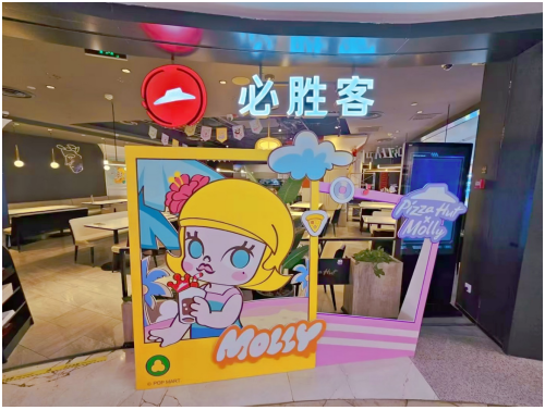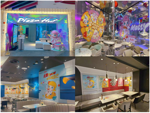 此次联动活动除了备受喜爱的周边产品外,必胜客还特别打造了多家MOLLY主题门店,为粉丝们创造沉浸式的美食体验。俏皮灵动的MOLLY造型遍布店内店外的每个角落,从可爱梦幻的大型窗贴与墙贴,到MOLLY元素特别打造的菜单板,让你与MOLLY共聚必胜客度过“甜蜜食光”。