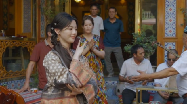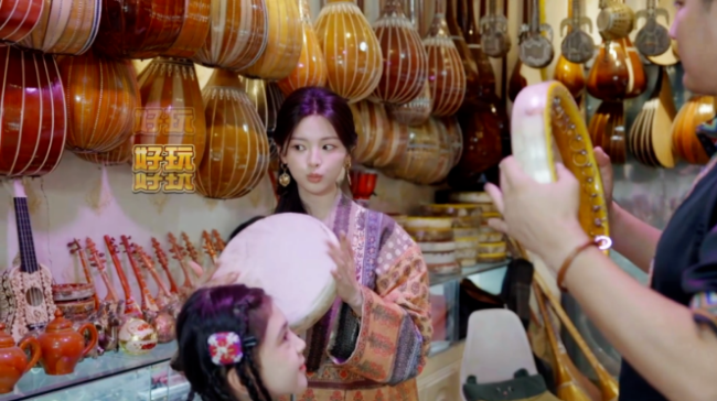 旅行的第一站,杨超越来到了老城文化中心,欣赏十二木卡姆的音乐表演。十二木卡姆,由十二套大型古典音乐组曲组成,每一部都是独立的艺术世界。它的旋律,如同天山融水,清澈而深邃,流淌在每个听众的心田。它的节奏,时而如同草原上的马蹄,激昂奔放;时而如同沙漠中的驼铃,悠扬远行。杨超越被其深沉的文化底蕴和独特的艺术魅力所打动,更能深刻感受到维吾尔族的文化魅力和生活哲学。