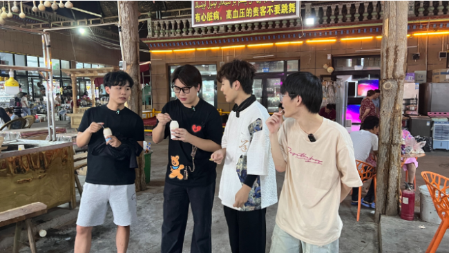 在杨超越深度体验莎车文化的同时,电竞选手们也在积极参与各种挑战任务,感受莎车浓厚的历史文化与美食美景。白天,选手们在莎车老城区的各个名胜古迹拍照打卡,更领略了十二木卡姆的优美旋律与其背后蕴藏的丰厚历史文化。最后,选手们一起来到了莎车最具特色的喀赞其街夜市,开启了一场舌尖上的美食之旅。夜市上琳琅满目的小吃让他们流连忘返。从酸奶刨冰到烤包子,从石榴汁到烤馕,每一道美食都让他们赞不绝口。