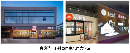 颇具特色的,还有位于南京东南大学内的肯德基和必胜客餐厅。餐厅设计融入了校史、文创周边等学术元素,这里不单单为师生提供丰富的就餐体验,更希望让师生有宾至如归的体验。同样在南京,9月南京理工大学开学日,来自肯德基的独立茶饮品牌“爷爷自在茶”正式入驻校园。凭借清甜爽口的米乳茶和网红巨大的蛋挞,开业首日就虏获了师生们的味蕾。大三学生Tracy开心的表示,“今天收获新学期的第一杯奶茶,还有网红‘巨大的蛋挞’!校园美食简直太赞了!”
