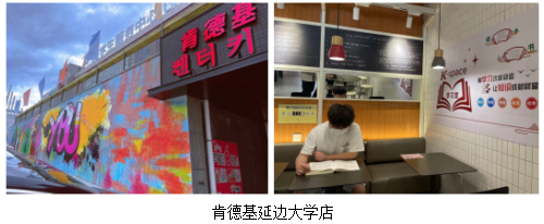在祖国东北地区,坐落在吉林省延吉市的延边大学肯德基餐厅,也有着属于自己的文化特色。餐厅招牌有着中文及朝鲜语双语标识,餐厅内有近一半的员工可以提供朝鲜语服务。除了提供美味的食物外,这家餐厅已成为同学们校园生活中不可或缺的一部分。今年大三的刘同学是店里的常客,每到期末复习季,这家肯德基餐厅就成了他最爱的自习空间。