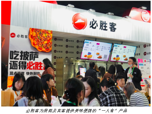 必胜客紧贴合市场需求,升级就餐环境,创新推出特色产品,3600多家门店的成长见证其在中国市场的创新与蜕变。从必胜客WOW试点店到Pizzeria首店,必胜客不断刷新着消费者的餐饮体验;年度推出的独特“比萨堡”,丰富了“一人食”选择。本届进博会,必胜客带来了在各大展会现场广受欢迎的焗饭、肉酱面及经典小食等“一人食”产品,获得了专业观众的青睐与认可。