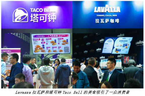 Lavazza拉瓦萨和塔可钟Taco Bell则凭其意式醇香与墨西哥风味,为进博会添上浓郁的国际色彩,吸引八方食客流连驻足。有着超百年历史的意大利“老字号”咖啡品牌——Lavazza拉瓦萨,在刚刚结束的上海网球大师赛惊艳亮相,浓郁的意式风情成为了其在大型展会及赛事的特有标签。在进博会现场,Lavazza拉瓦萨带来水牛乳清甜拿铁、水牛乳咖啡花挞等产品。墨西哥风味快餐品牌塔可钟Taco Bell则为进博会带来了芝士牛肉卷和玉米片,口口美味带来味蕾大满足,营养与美味兼顾的产品在寒冷的深秋时刻,尤其受到现场消费者的喜爱。