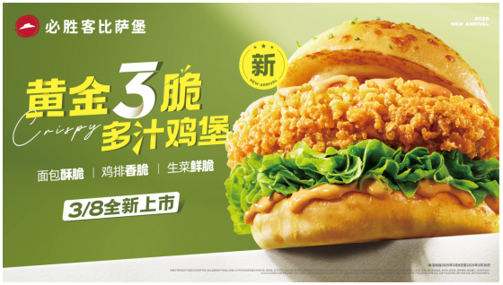 “脆响三重奏!”“味蕾狂欢!”“一口下去,咔呲咔呲”。近日,必胜客于比萨堡上市一周年之际推出全新黄金三脆多汁鸡堡,在小红书平台上,众多消