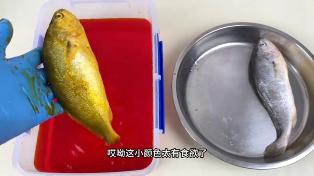 某些商家用碱性橙等工业染料涂抹鱼身,让养殖鱼披上“野生黄金甲”,甚至用黄姑鱼染色冒充大黄鱼。这些化学物质轻则引发过敏,重则损伤肝肾。