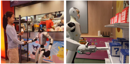 当童趣邂逅科技,会碰撞出怎样奇妙的火花?六一儿童节当天,肯德基携手宇树机器人“肯大”与银河通用机器人“肯二”,在肯德基上海图书馆店开启了