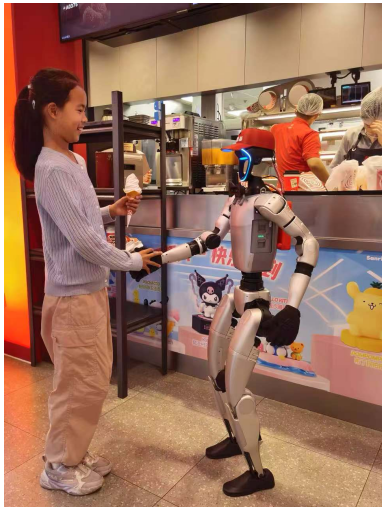 当童趣邂逅科技,会碰撞出怎样奇妙的火花?六一儿童节当天,肯德基携手宇树机器人“肯大”与银河通用机器人“肯二”,在肯德基上海图书馆店开启了一场别开生面的跨界合作活动,凭借沉浸式互动和前沿技术应用,解锁硬核科技焕新餐饮服务体验的新玩法。