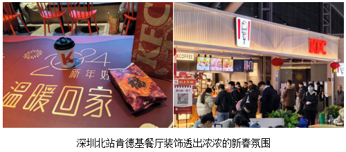 随着春运的到来,深圳北站肯德基餐厅已经被浓浓的新春氛围包围,喜庆的新春金桶和餐厅温暖的红色基调相得益彰,让即将踏上回家路的乘客提前感受到节日的温暖。踏上归途列车前,去肯德基餐厅吃上一顿大餐,成了不少携带孩子家庭出行的“标准动作”。