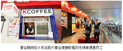 为了保障春运,无锡肯德基创新思路,用服务换方便,用速度换时间。肯德基在无锡火车站候车大厅、进站口、网约车上客区开设的三家餐厅均设有“随取随走”的便捷服务,无需进店,在窗口便可轻松取餐。“为了赶回家的早班高铁,我在地铁上就下单了,出站到肯德基TOGO窗口顺手取好早餐就能进站,很高效!”准备回老家的吴先生笑着说。