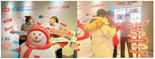 “大雪人”打卡太冷,肯德基干脆做了两个雪人摆在餐厅,“小金豆”分分钟实现雪人打卡自由;听到“小金豆儿”讨论鞋底儿不防滑,餐厅立马铺上了防滑地毯;眼见餐厅里越来越多外国游客,为了更加流畅地帮他们点餐,“肯家弟子”们休息时间纷纷主动背起了单词,学习氛围那叫一个浓郁,彼此打趣儿时还不忘感叹“当年与学霸之间只差了几枚‘洋土豆儿’……”;怕“小金豆儿”冻着,热乎乎儿的姜丝可乐立马安排,免费送到“小金豆儿”手中;因为总有聪明的“小金豆儿”来餐厅向肯家弟子打听周边情况,“肯家弟子”果断变身“本地通儿”,吃、住、行、玩、导游词……一问一个全知道!