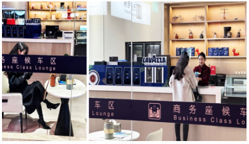 “咖啡浓郁而温暖,如同一段精彩的故事。”在咖啡馆品上一杯咖啡,是人们对于品质生活的追求。如今,这样的美好追求在部分高铁站商务休息室就可以实现了。悦途出行与Lavazza拉瓦萨咖啡品牌紧密合作,携手打造了一个独具特色的空间,将经典意式咖啡的醇香带入了商务休息室,在新春来临的时刻,为旅客提供了一份超越传统场所的品质享受,也彰显了一种时尚、舒适和富有时代感的生活方式。