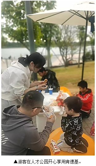 “我们的肯德基飞过来啦,快拍照啊”,带娃前来游玩的李女士点餐过后不久就收到了热腾腾的肯德基餐点,孩子们看着美食从天而降非常兴奋。上个周末在人才公园无人机取餐点成为公园游客们的新打卡点,无人机的快速送餐服务吸引了很多游客前来体验,让人方便快捷获取美味的服务受到了游客的好评。