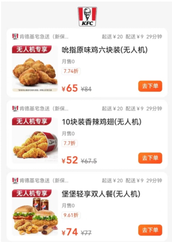 肯德基通过无人机配送缩短外卖的在途时间,尽可能保证餐品送达消费者手中时的温度与口感,这种“点对点”的配送模式让食物快速送达顾客手中,给顾客带来更好的用餐体验。