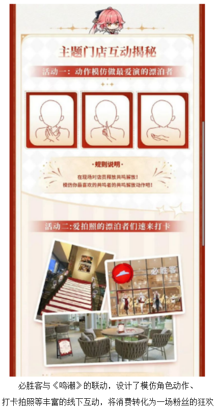 必胜客的联名从不局限于餐盘之上。以其与《原神》的多次成功合作为例,必胜客将全国上百家门店改造为主题店。在这些门店里,不仅有角色立牌、主题装饰,甚至背景音乐也换成了游戏中的BGM。更具互动性的是,玩家可以向店员喊出游戏“暗号”(如“契约已成,相聚必胜”)来获得限定海报等周边。这种设计让餐厅瞬间从一个用餐场所,变成了一个供玩家线下“面基”、交流、分享热爱的社交空间。这种体验的深度和广度,是许多依赖线上销售的新茶饮品牌难以复制的。