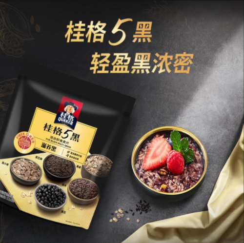 目前,桂格5养系列在市场上很受欢迎,作为新中式麦片引领者之一,核心卖点之一是丰富多元的食材原料,经精心配比后为身体提供丰富的营养物质。以桂格5养系列之一的5黑为例,以黑芝麻、黑米、黑小麦、黑麦、黑豆为原料,帮助提供人体所需的蛋白质、膳食纤维、烟酸、磷、钾、镁、铁、碳水化合物等,对解决国人营养早餐搭配问题提供了优质的解决方案。