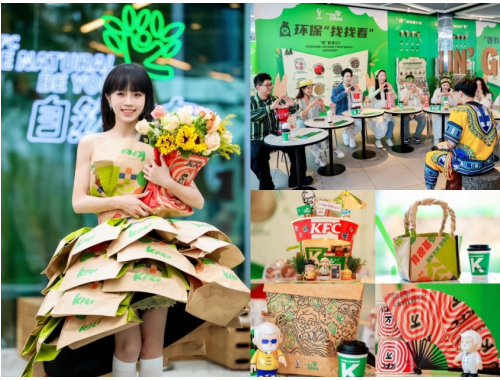 2024年世界地球日,肯德基联动成都、沈阳、上海、无锡等十余座城市的非遗传承人、青年艺术家、服装设计师和循环青年们,开展了一系列丰富多彩的活动,将肯德基餐厅的纸袋、咖啡杯和生活中随处可见的日常用品进行艺术“二创”,把循环理念应用到不同生活场景中,让环保成为潮流风尚。